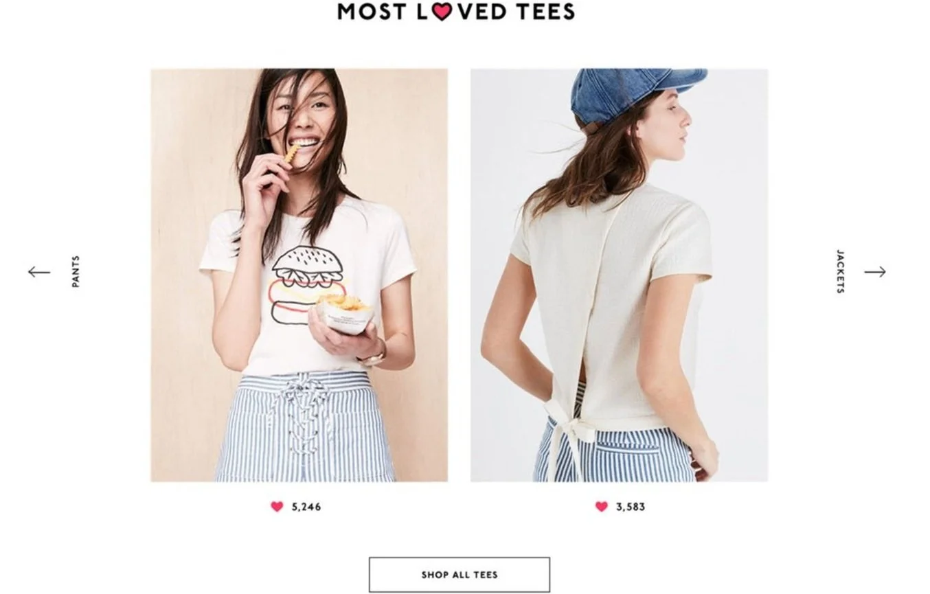 Madewell girls trust and look up to your brand. So, let’s put your expertise and opinions up front. Interactive “Staff Pick” badges will live throughout the new arrivals page, highlighting what you like best (plus some employee modeling skills).